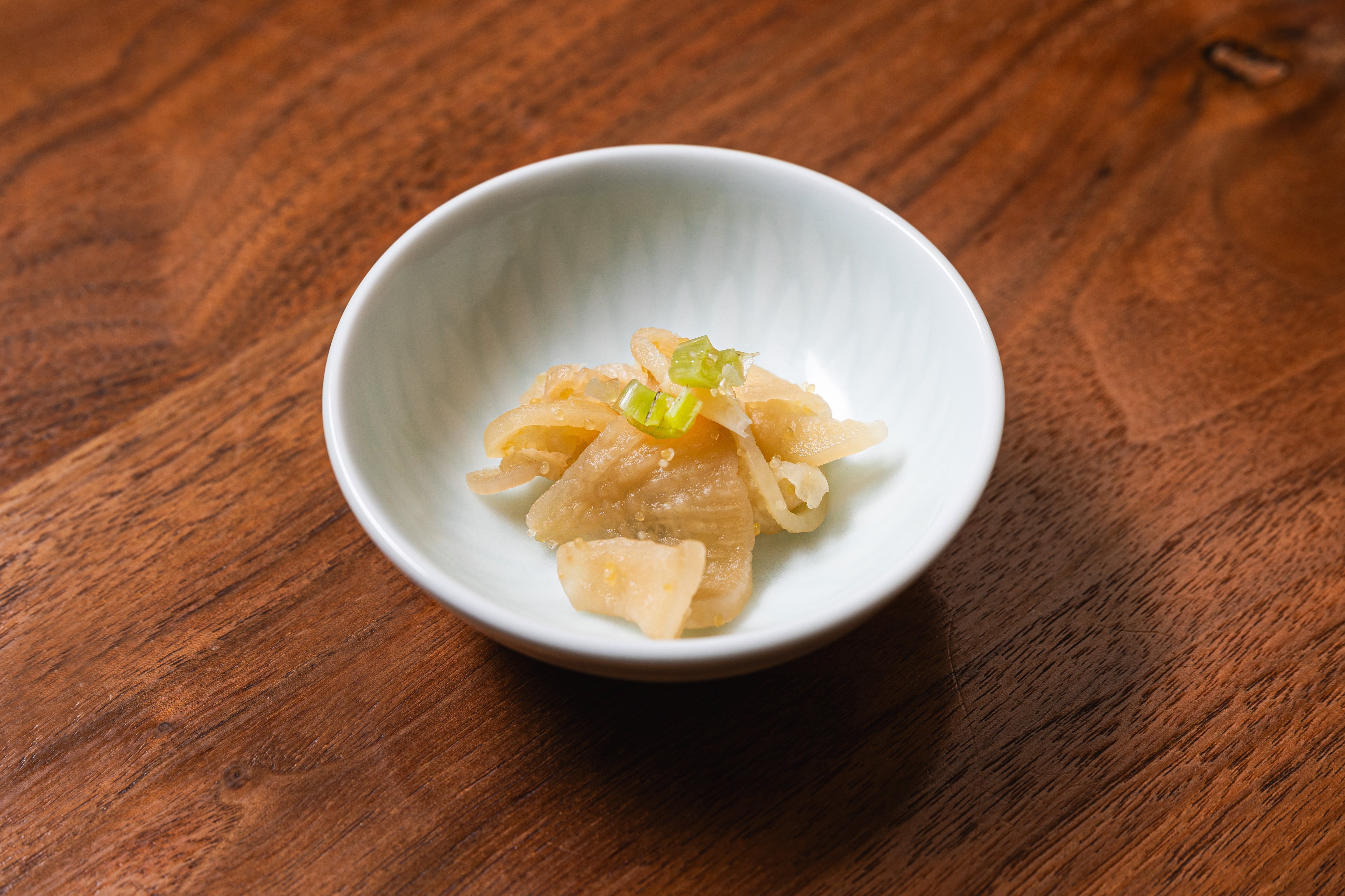 パリパリとした寒干大根と茎わさびのお漬物。魚卵も入ったちょっと贅沢な一品です。